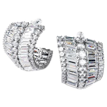 With a unique curved design, these sculptural earrings are beautifully complex. Showcasing a mix of brilliant and step cut clear stones, they make an elegant statement. Wear them with a simple polo neck, or layer up your look with other pieces from the Hyperbola family to enhance the drama. These earrings are part of the Hyperbola family, designed by Creative Director Giovanna Engelbert for Collection I.