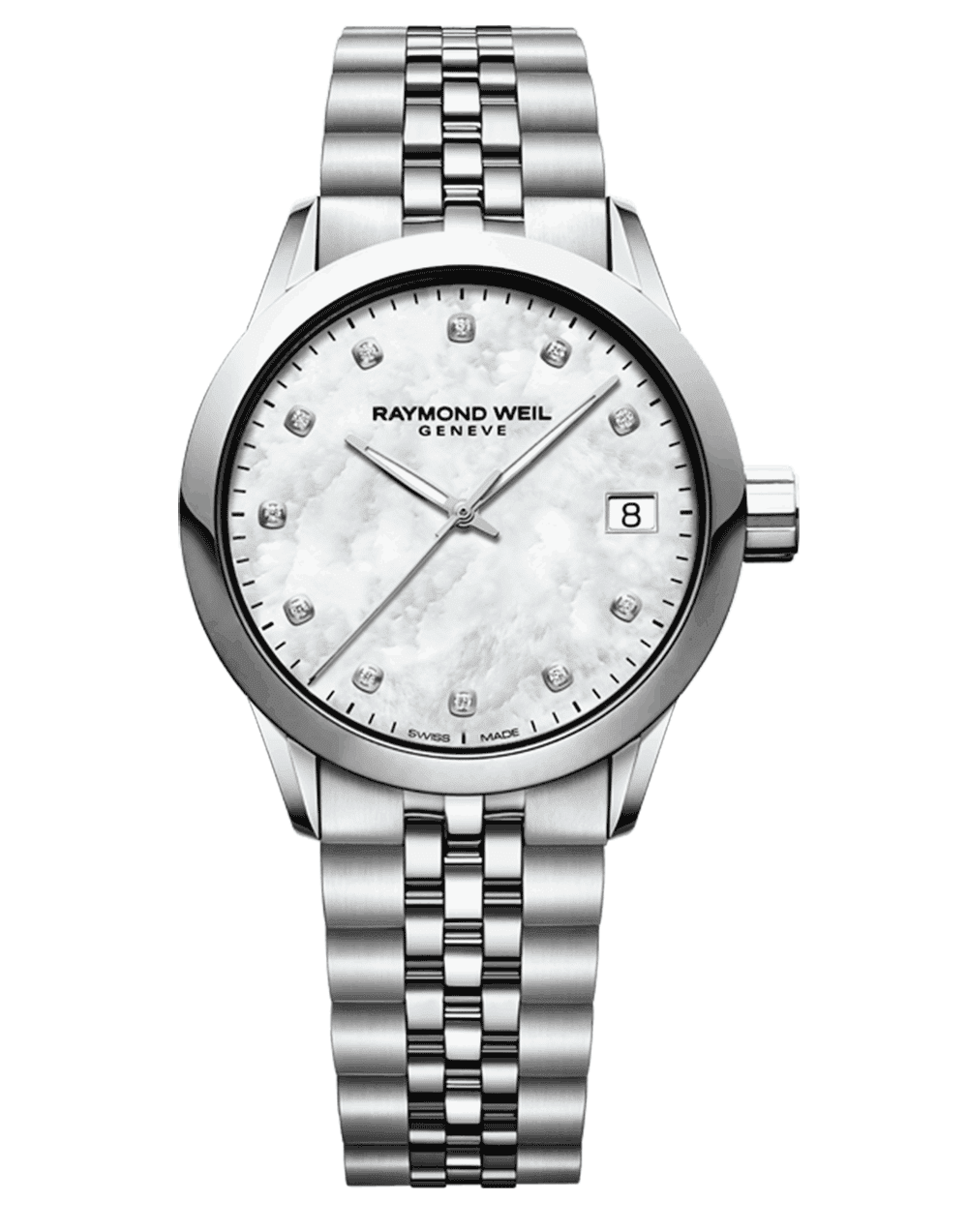 Freelancer Diamond Ladies Watch, 34 mm, stainless steel, white mother-of-pearl dial, 11 diamonds