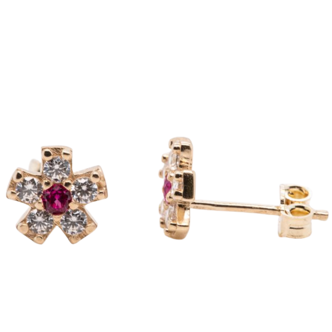 Stylish ruby colored CZ 14KT yellow gold pushback